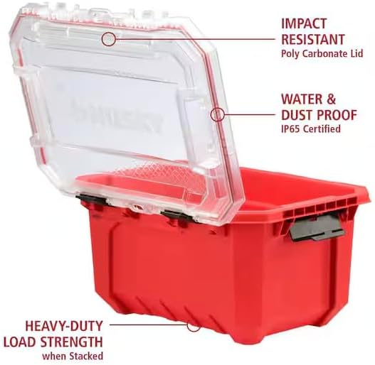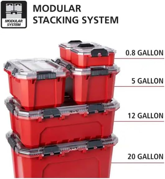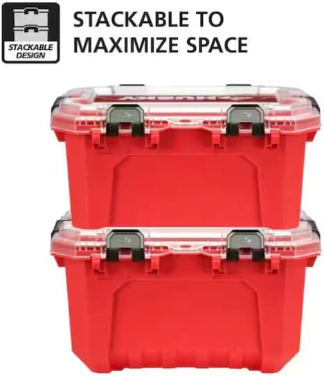 This 5-gallon professional heavy duty storage container is built to handle your toughest organizational challenges. Constructed from durable plastic with waterproof protection, it keeps your belongings safe from moisture, dust, and damage. The vibrant red color makes it easy to identify and locate in garages, workshops, basements, or storage areas. The convenient hinged lid design allows for quick access without the hassle of removing and storing a separate lid, while maintaining a secure closure when not in use. These containers are stackable, maximizing your vertical storage space and helping you create an efficient, organized system. Whether you're storing tools, seasonal decorations, craft supplies, or household items, this heavy duty container delivers professional-grade performance. The robust construction ensures long-lasting reliability even in demanding environments, making it an ideal choice for both residential and commercial applications.