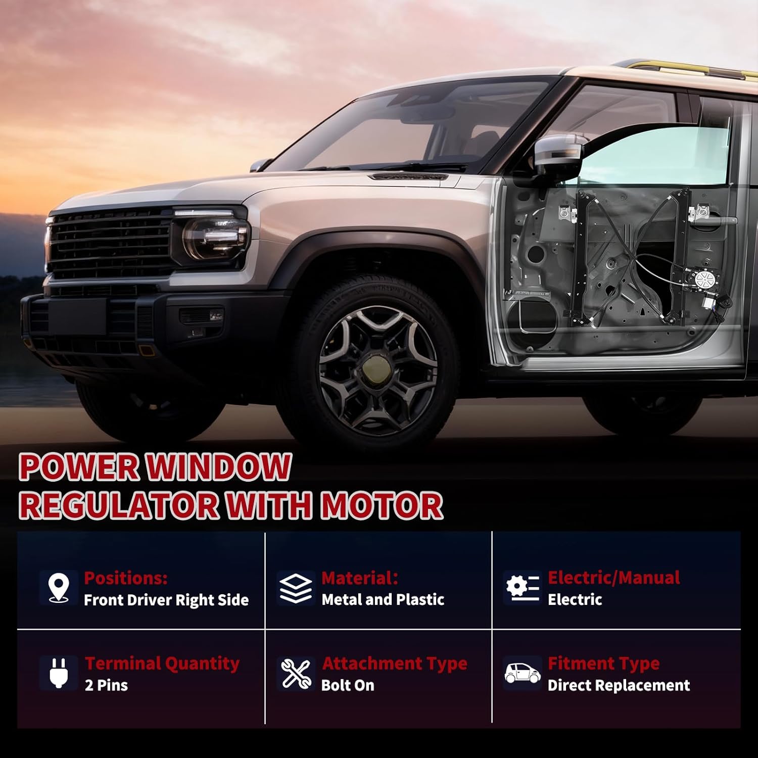 | Included Components | 748-975 Front Passenger Right Side (2 Pins Connector) Power Window Regulator |