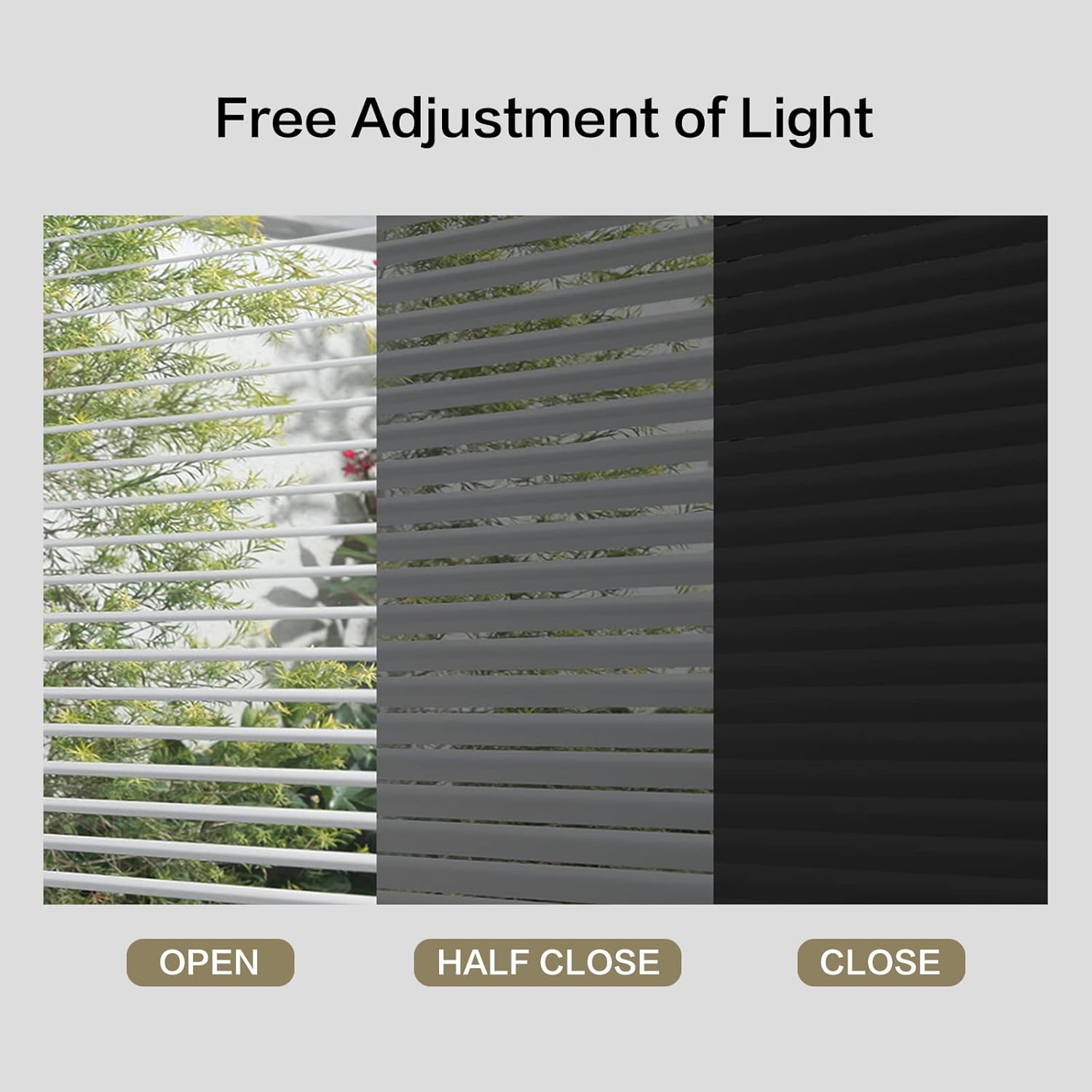MOUNT TYPES: Inside mounted shades will have a deduction taken of approximately 0.2" to ensure a proper fit inside the window frame.Inside mounted shades require a minimum frame depth of 2inch for secure installation. If your window frame depth is less than 2inch please select outside mount.Outside mounted shades should be ordered with the exact width of the area you wish to cover. Outside mounts are often used when there is not sufficient frame depth for inside mounting.Our shades come with all mounting hardware, and mounting hardware for both inside mount and outside mountINSIDE MOUNT MEASUREMENT: Step 1.Measure the inside frame width at three locations-the top,middle,and bottom. Record the smallest of the 3 measurements and use that number as your inside width when ordering.Step 2. Measure the height at 3 locations-the left,middle,and right side. Record the smallest of the 3 measurements and use the number as your inside width when ordering.OUTSIDE MOUNT MEASUREMENT: Step 1. Measure the outside frame width adding 3-6inch to be the outside mount width.Step 2. Measure the outside frame length adding 4-6inch to be the outside mount length. The overlap it recommended to allow appropriate coverage and avoid any light gaps.Type: Aluminum BlindsFeature: Block Light & UV, Keep WarmMaterial: AluminumInstallation: All Mounting Hardware Included.