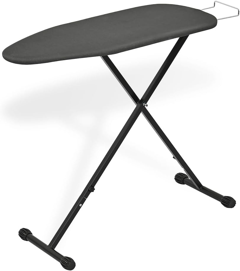 Tabletop type that allows you to sit and iron. Recommended for: Sitting and ironing; Space-saving and compact storage; Basic vessel shape; Easy to use with rounded tips. Easy to iron any garment. Aluminum coating: Heat efficient aluminum coating. Easy heat transfer for a quick, clean finish. The top board prevents steam from trapping. The top plate is processed with mesh, so it does not trap steam. Comes with a hanger hook, so you can store it in your closet