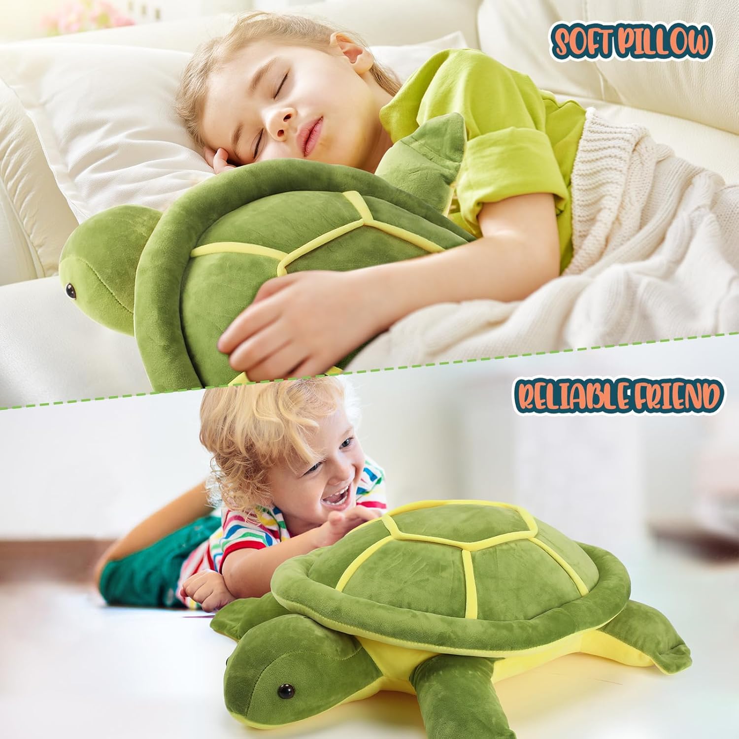 Features: Easy to take and store: The turtle plush toy is soft, you can fold it into small shapes to store, won't take you so much space, convenient to use for several times. Where to use: The turtle toy is suitable for so many places, such as home, office, working places and more, allowing people to use as they want. Specifications: Material: polyester with PP cotton filler Color: as pictures shown Length: about 28 inches/ 70 cm Package includes: 1 x Sea turtle plush Notes: Manual measurement, please allow slight errors on size. The color may exist a slight difference due to different screen displays.