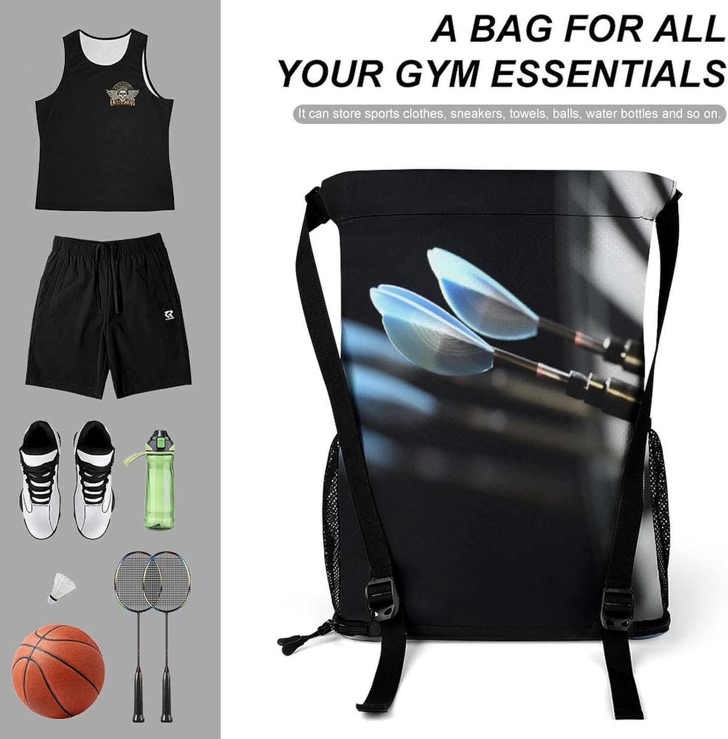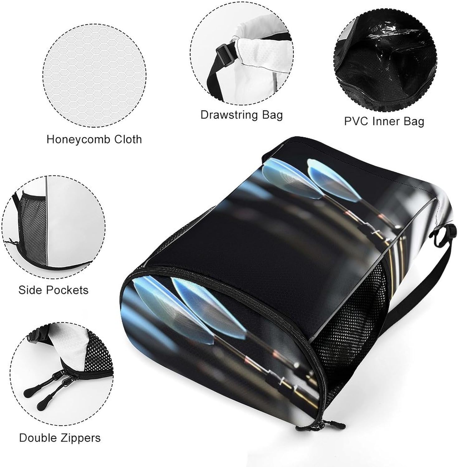 Our premium drawstring bag is the ideal companion for your active lifestyle. Made of premium honeycomb fabric, this pocket is not only durable but also has a comfortable textureA major feature of this Darts Arrows drawstring gym bag is the wet/dry separation design. Whether you are coming back from a sweaty workout or traveling in the rain, you can easily separate wet clothes or shoes from dry essentials such as electronics, documents or cosmetics. This innovative design keeps your items neatly organized and protectedWith a large zipper opening, it is very simple to access items. The zipper design conforms to the usage habits of most people and can be opened and closed smoothly and easily. You can easily and quickly get what you needThe sturdy structure of this sports bag is another feature. The edges of the shoulder straps are carefully processed, which makes it more resistant to heavy objects than ordinary bags. This ensures that it can accompany you in all sports and adventures without worrying about damageOur Sports Drawstring Backpack pocket also has a large capacity. It can hold a variety of items, from clothes and shoes to iPads, books, keys, ID cards, cosmetics and wallets. It is suitable for various occasions, such as traveling, going to work, fitness, etc. No matter where you go, this pocket can meet your storage needs