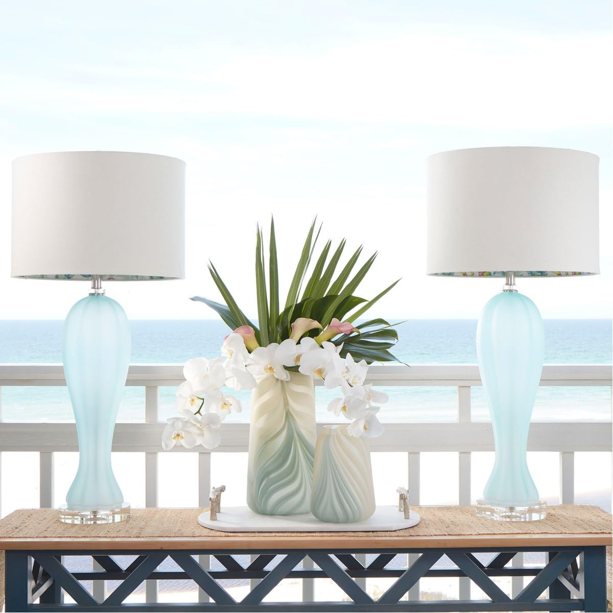 Take home this gorgeous glass Aubrey table lamp to add a touch of whimsy and magic. Made by Cyan Design. Cyan Design is the source for unique decorative objects. Decorative accessories for the most vibrant interior design. - color: blue-cyan and made of: glass - height: 34.5 diameter: 16 - finish: green