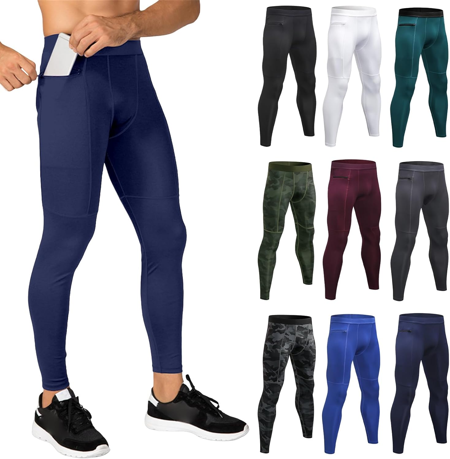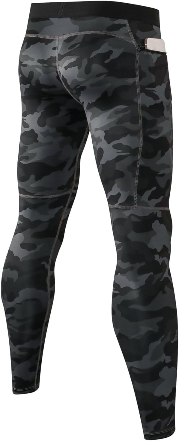 Men's Compression Pants Quick Drying Workout Athletic Leggings Summer Swimming Running Gym Tights with Zipper Pockets