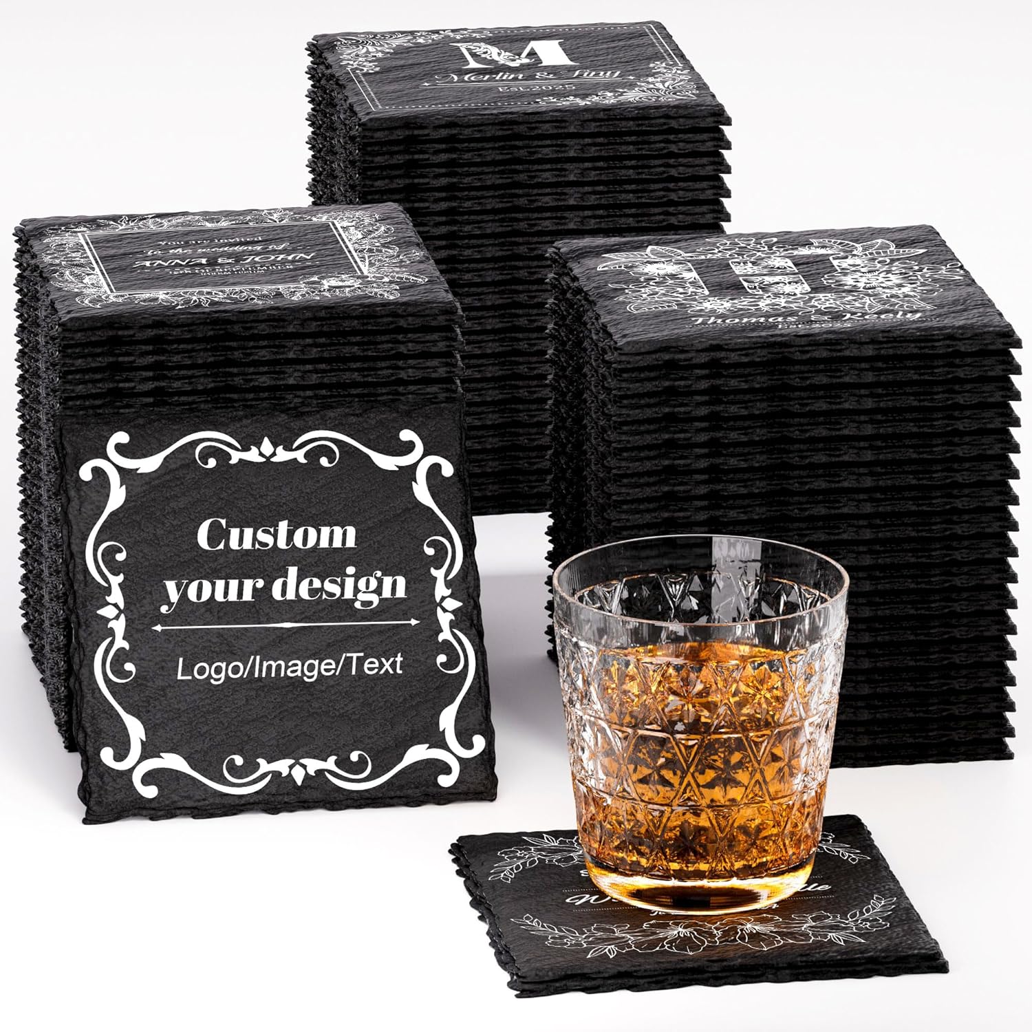 Transform your space with our premium natural slate coasters, designed for both laser engraving and personalized DIY art. Each piece is cut from authentic black stone, giving it a unique texture and elegant matte finish that complements any décor.These slate drink coasters are more than just functional — they’re a creative canvas. Personalize them with names, messages, or logos through engraving or etching, or get artistic with chalk, acrylic paints, or mosaics. The result is a one-of-a-kind piece that reflects your style and personality.The smooth surface and sturdy build make these coasters both durable and heat-resistant, providing long-lasting protection for your tables from hot mugs and cold drinks alike. Each coaster also includes EVA non-slip pads on the bottom to prevent sliding and surface scratches, ensuring stability and safety on any tabletop.Perfect for both home and professional use, these customizable slate coasters make a thoughtful gift for weddings, anniversaries, housewarmings, or any special occasion. Whether you’re decorating your home, crafting a personalized gift, or adding a stylish touch to your dining table, these natural stone coasters deliver sophistication and function in one. 100% Natural Black Slate Stone Ideal for Laser Engraving & Etching Heat & Scratch Resistant Anti-Slip EVA Pads on Back Easy to Clean and Maintain Perfect for DIY Projects & Personalized Gifts